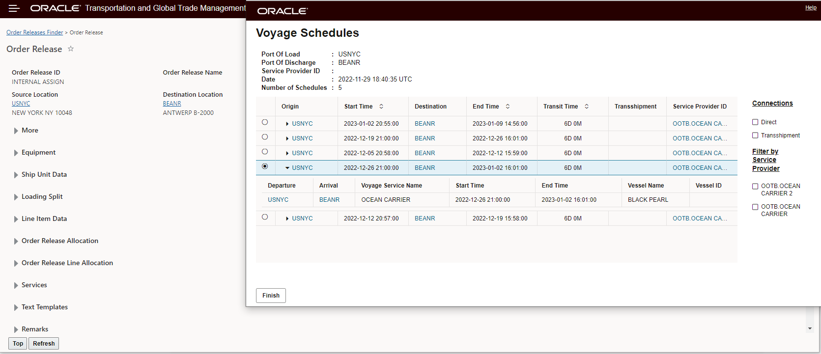 - Order Release Dimensions for Earliest Estimated Pickup Date, Latest Estimated Delivery Date