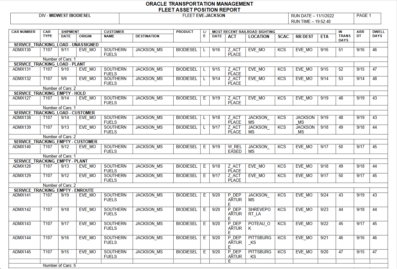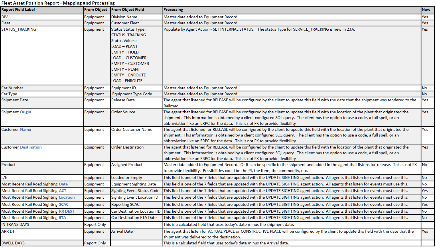 | 21 DEC 2022 | Asset Position and Status Report | Fleet Asset Position Report and Fleet Asset Status Report | Updated document. Revised feature information. |