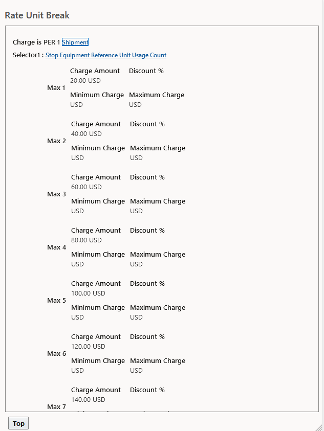 When the LTL DISCOUNT INCREASE Data Rule Instance is applied, the discount on the rate will be increased by 20%. Assuming an undiscounted cost of 300 USD and an existing 20% Discount already specified on the rate, when LTL DISCOUNT INCREASE Data Rule Instance is applied, the effective discount applied will now be 40% - the original 20% discount increased by an additional 20% based on the rule resulting in a 40% discount against the 300 USD amount for a discounted cost of 180 USD.