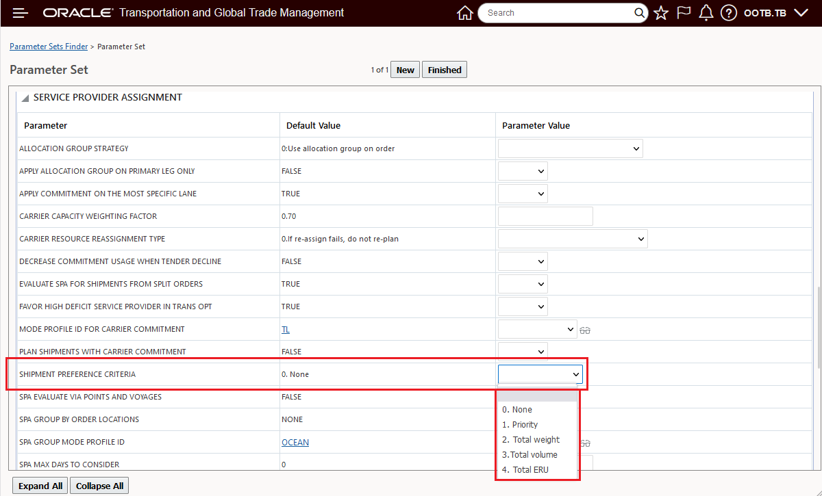 - You can also create Modeling Work Assignments using OTM Shipments as input using the Scenario Work Assignment Optimization with Modeling Project Type = Work Assignment. From a parameter configuration setup the configuration is similar to the above setup: