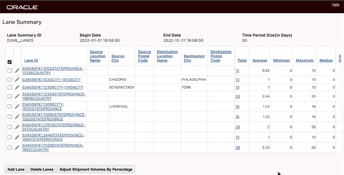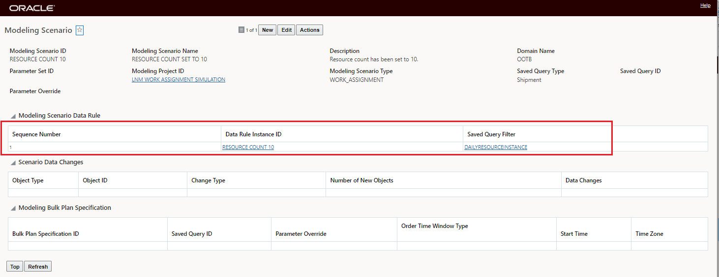 This feature extends the Logistics Network Modeling capabilities to include Work Assignment Project and Scenario modeling simulations. This additional modeling capability will allow you to easily evaluate the impact/benefit of different resource schedule settings (e.g., count, duration) using as input. You can generate Work Assignment related Modeling Projects and Modeling Scenarios using either your operational OTM shipments as input or you can generate Modeling Work Assignments as part of your LNM Bulk Plan simulation runs.