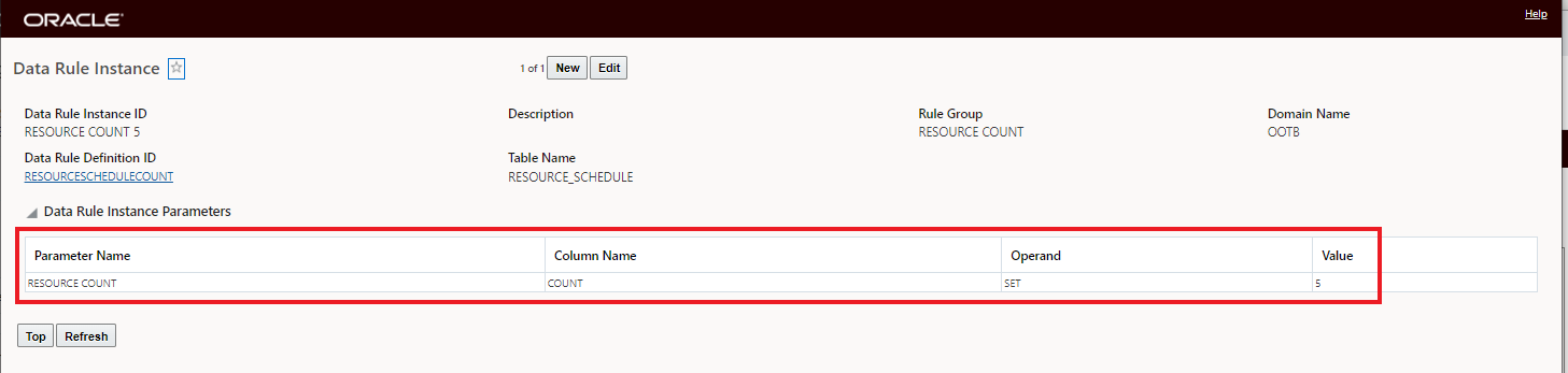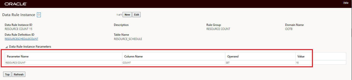 For this example, the Data Rule Definition and Data Rule Parameter will be Count based - as shown below. The Data Rule Instance for each Modeling Scenario will then have a different Count value set for each of the Modeling Scenarios.
