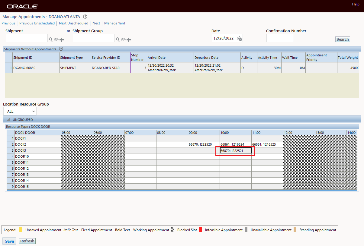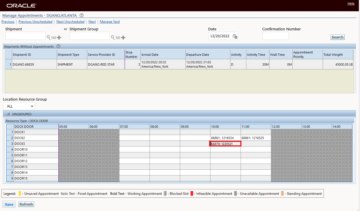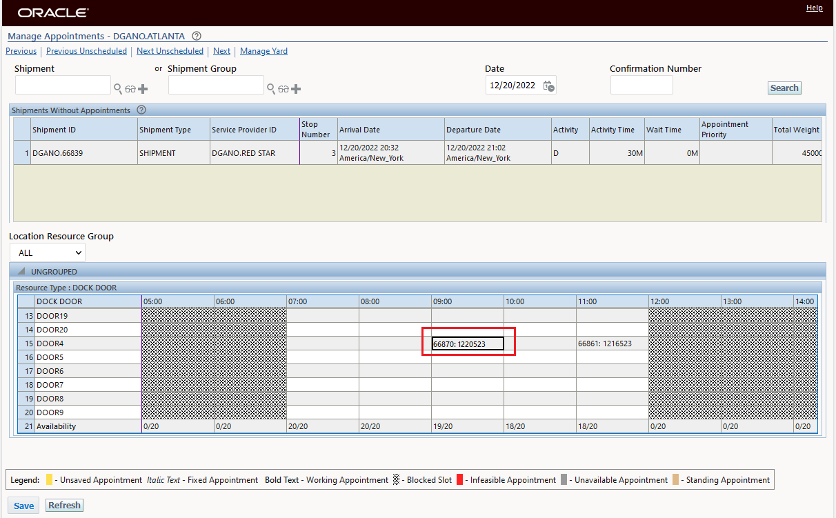 - Dock Scheduling Gantt Actions - Block Resource, Create Appointment