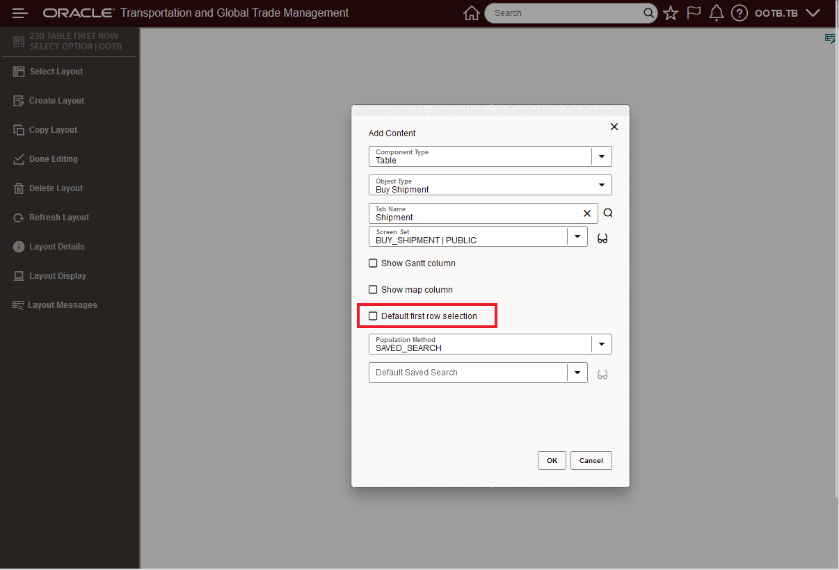 This feature provides you with the option of having the first row of data in an Enhanced Workbench table default to being selected or not selected. In previous versions of the Enhanced Workbench, by default, the first row of data in a table was always selected, this feature allows for the default behavior to be that the first row of data in the table is not selected by default. Removing the first record default selection should help eliminate the accidental inclusion of the first row of data when running actions. Your existing/previously created Enhanced Workbenches will have the Default first row selection on by default (previous behavior), for newly added Table Content the Default first row selection will be deselected by default (new behavior).