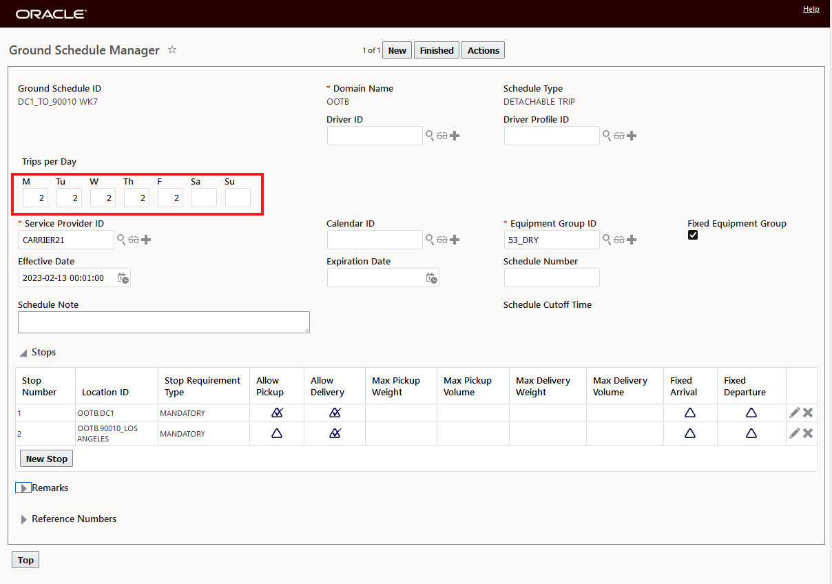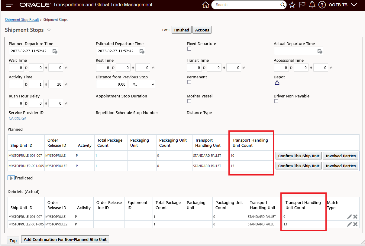 Result for Rule Type = Shipment Stop, Location Type = Stop and Quantity Type = Planned