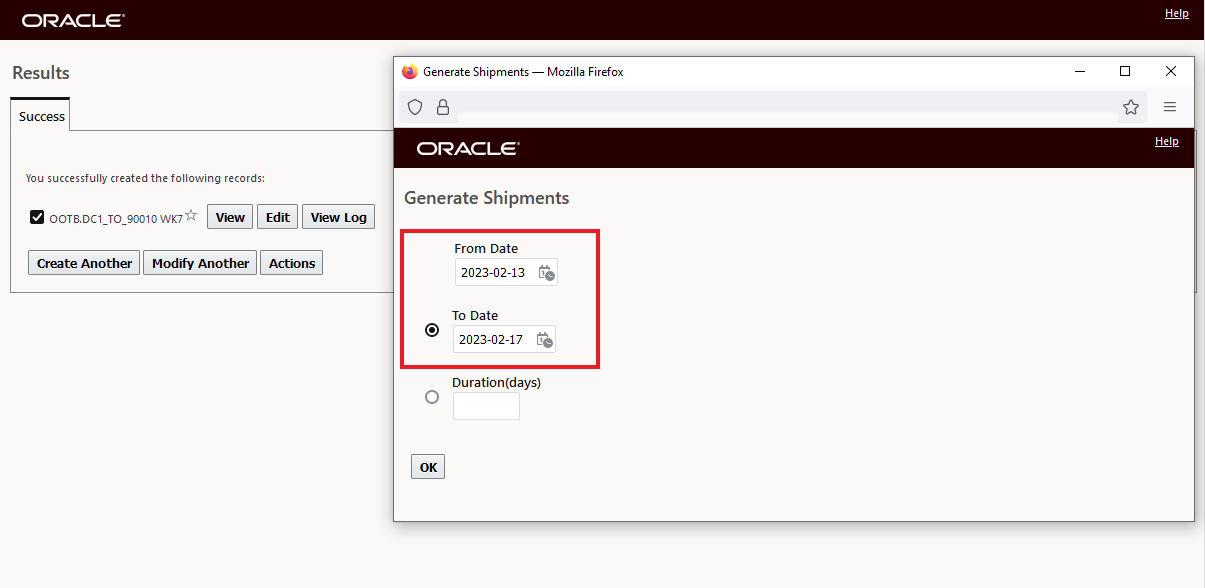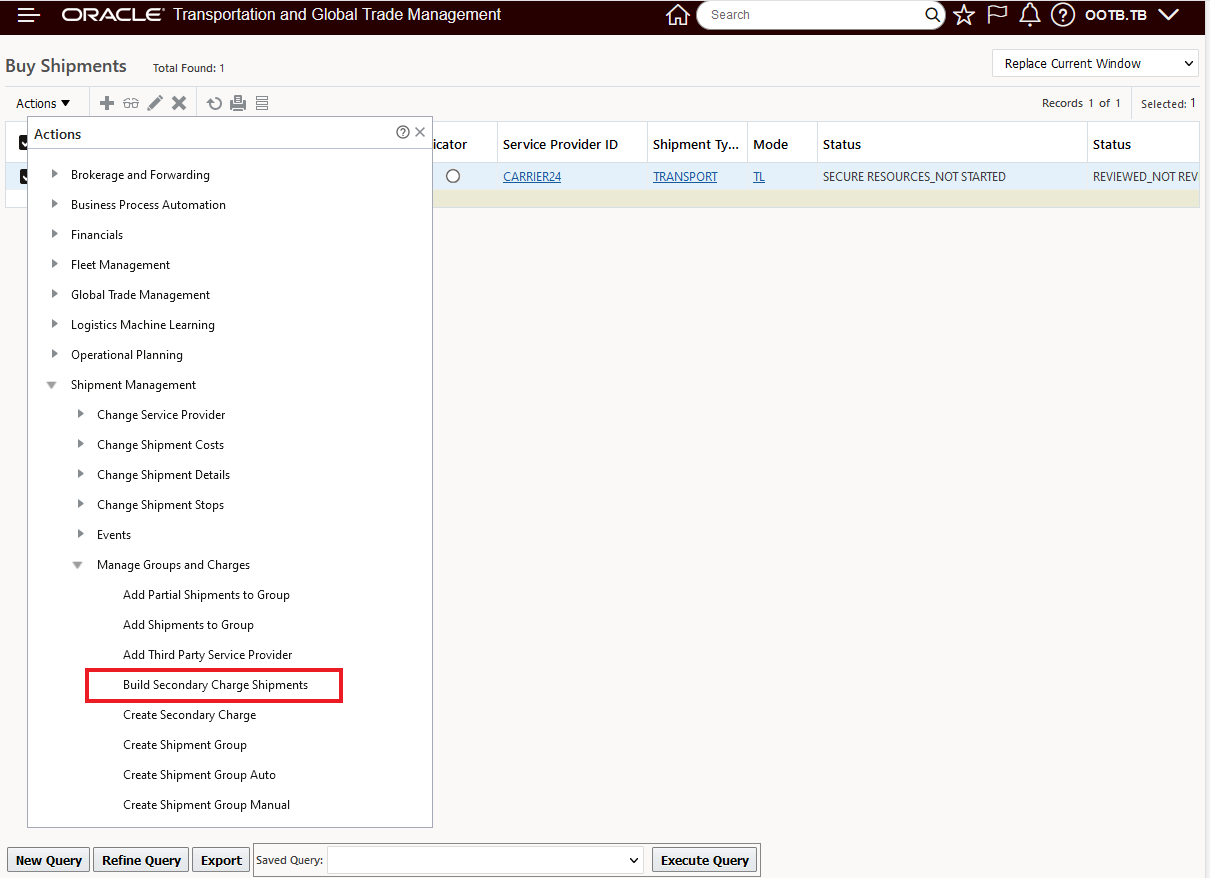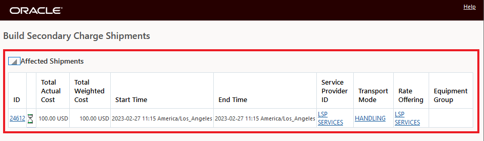 To generate the secondary charge shipments the Build Secondary Charge Shipments action is run.