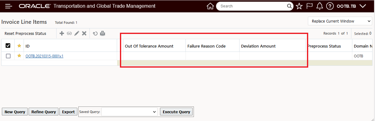 Fields added to a new section - Out Of Tolerance Details - in the View Manager for the Invoice Line Item.