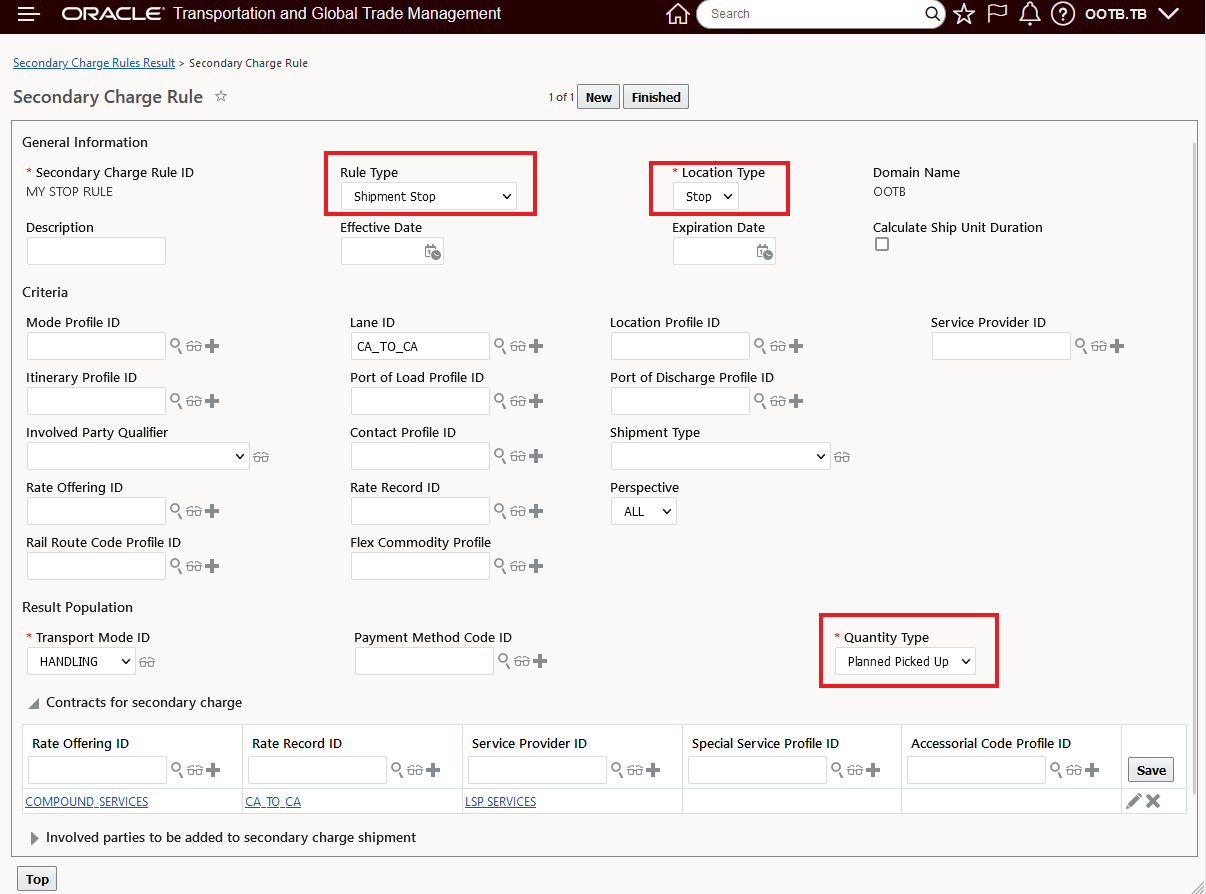 This usability enhancement improves the operation of the Secondary Charge Rule UI and expands the options available, and the logic employed for calculating planned and actual stop level ship unit based secondary charge shipments.