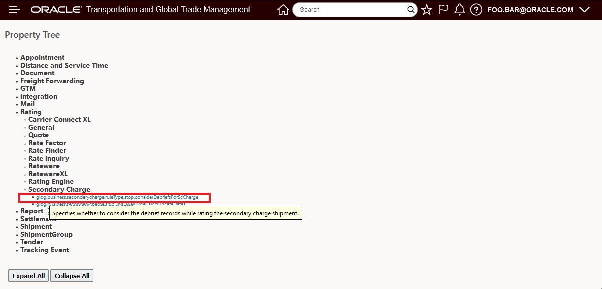 You can find more information about the property glog.business.secondarycharge.ruleType.stop.considerDebriefsForScCharge by reviewing the information provided in the Property Tree - as shown below.