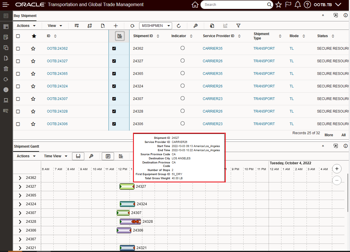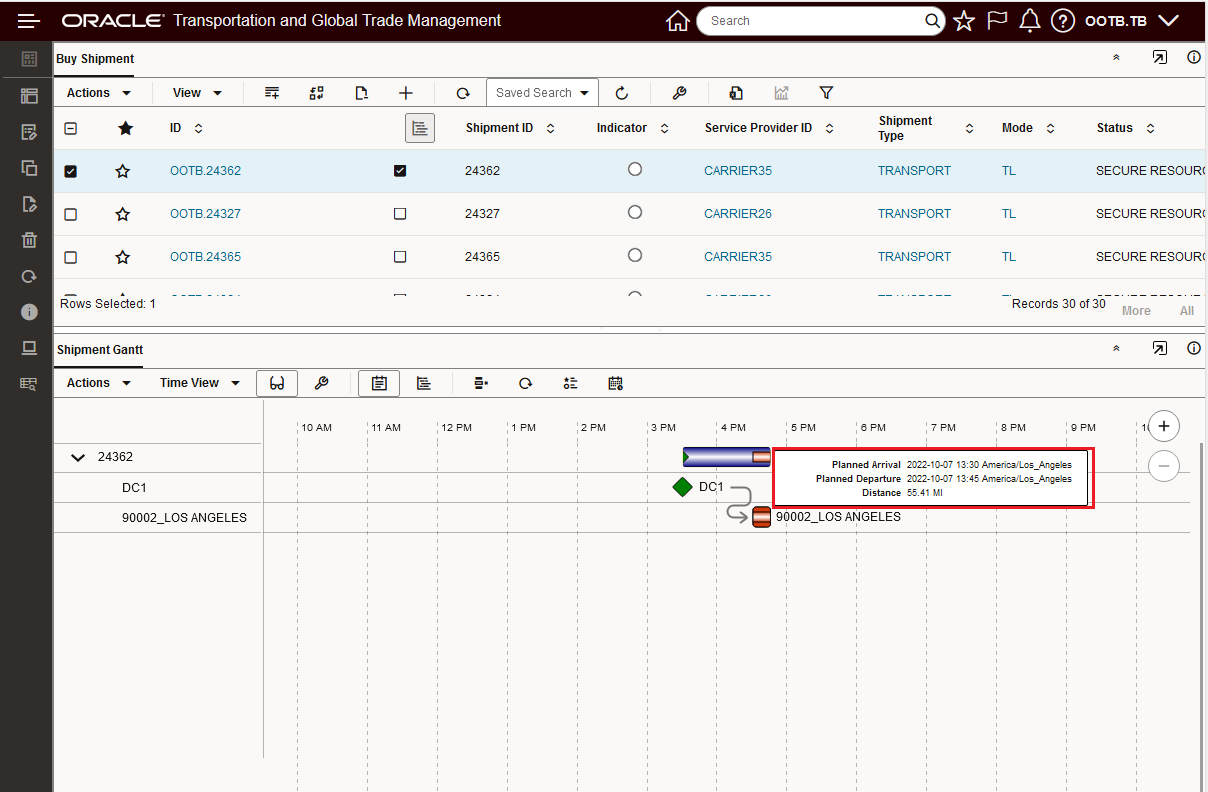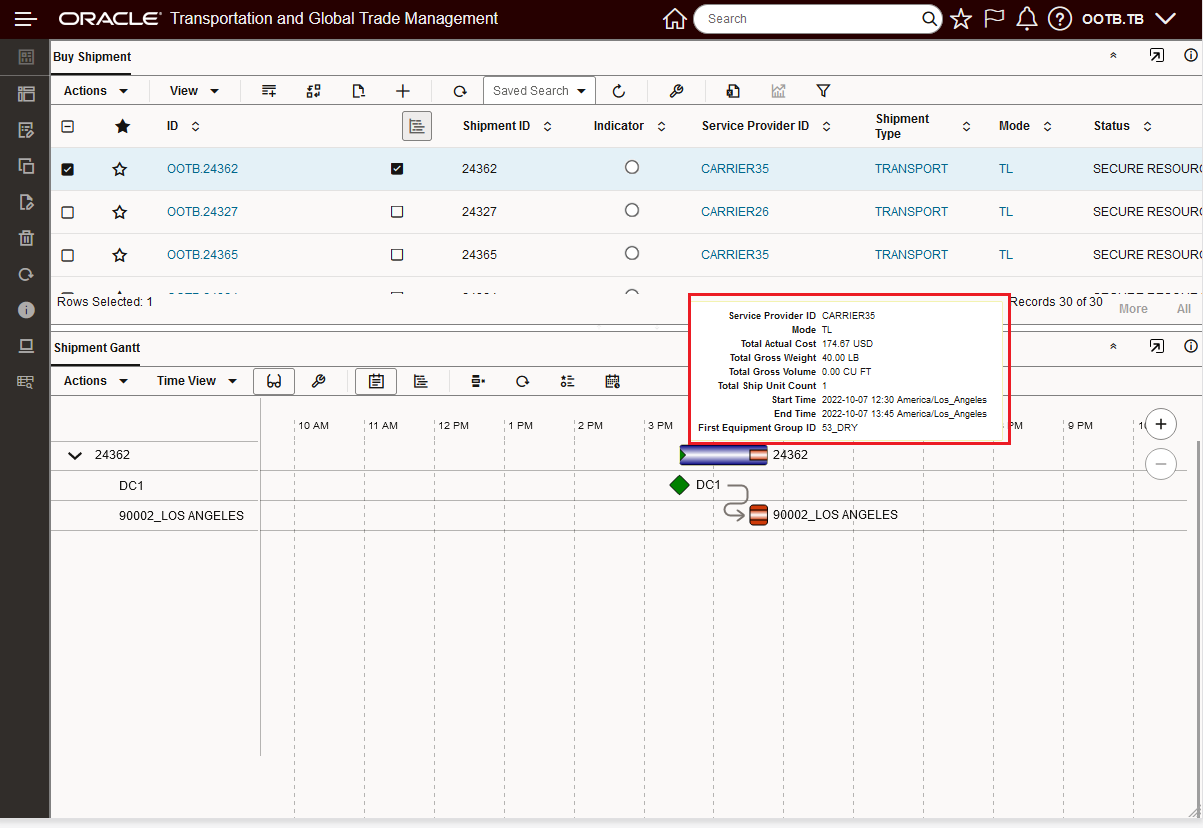 In the example below, the Shipment Gantt will be used to demonstrate the capabilities, the same pattern is provided for all of the Gantts and their related Hover Text enabled objects.