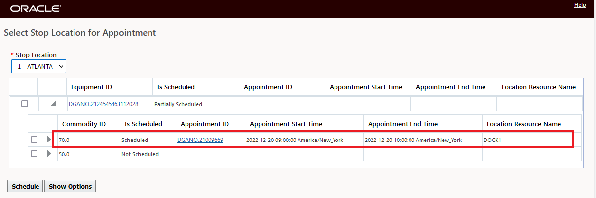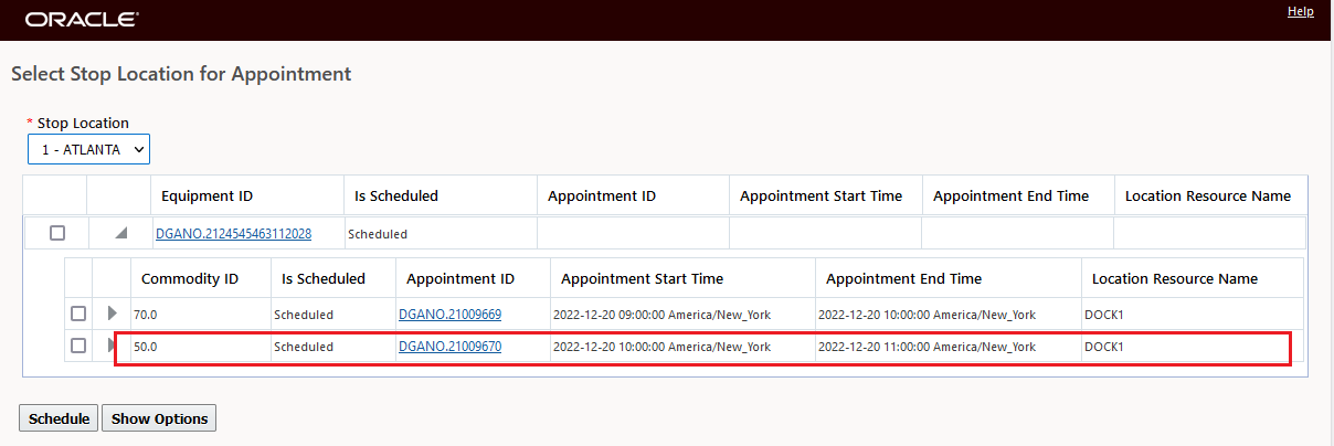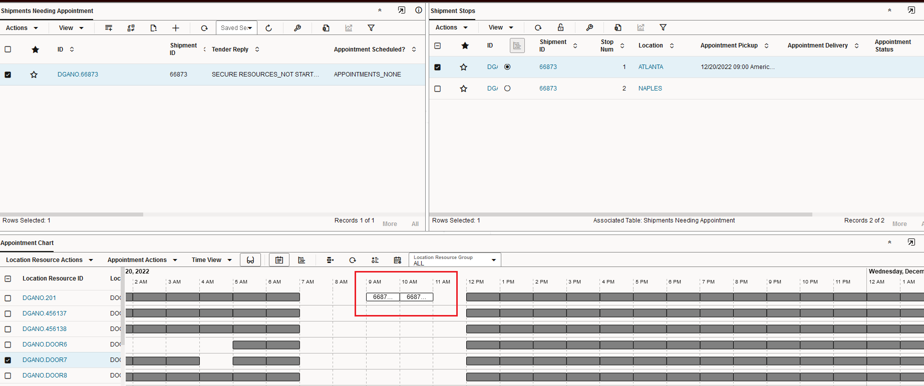 The shipment stop's appointment is being scheduled for 7:00 AM on the 20th.