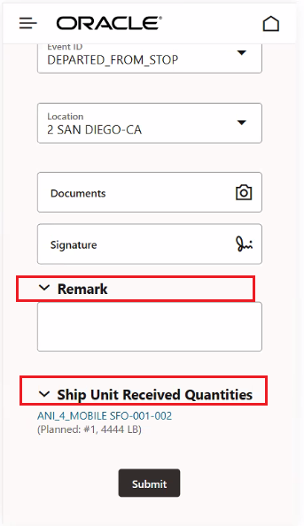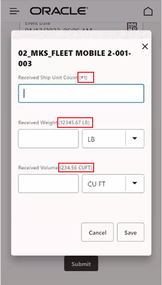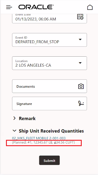 For this scenario, the Received quantities for the two delivery stops were also updated - as shown below. The updated quantities are consistent with what was updated for the pickup stop i.e., the actual picked up quantities match the actual received - 9 and 13.