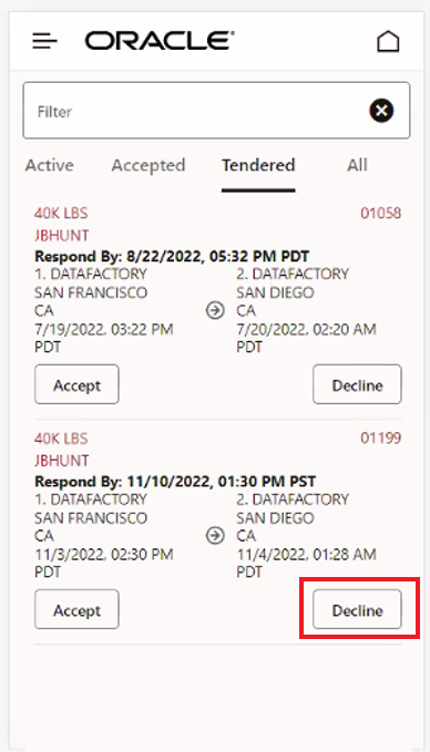 NOTE: Switching between the unfiltered view - above, to the filtered view below, deselects any records selected.