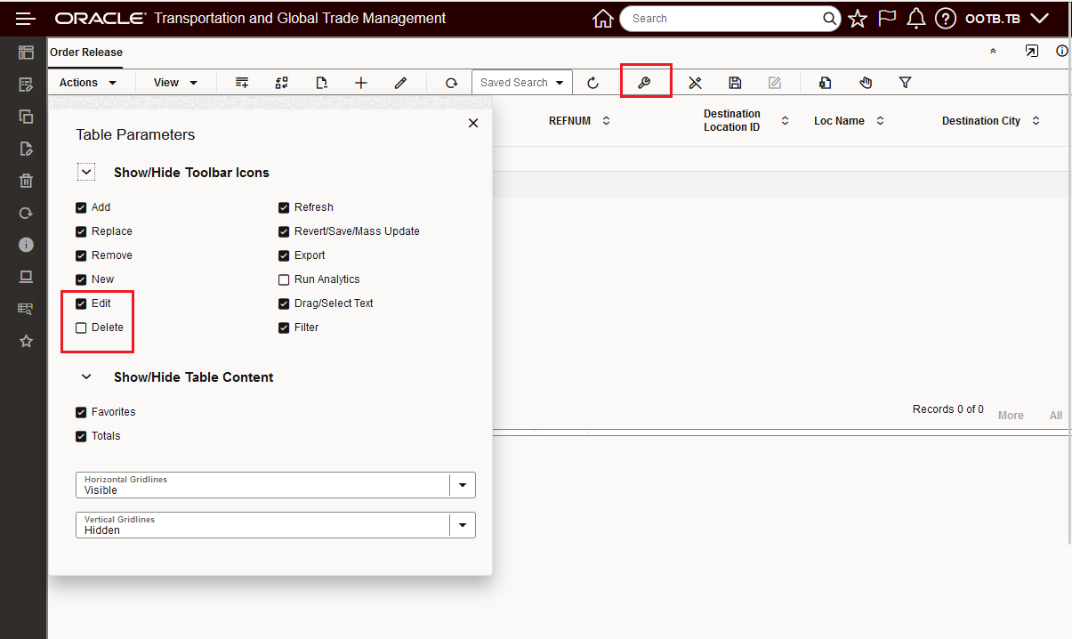 - Table Parameters - Delete and Edit Show/Hide and New Look
