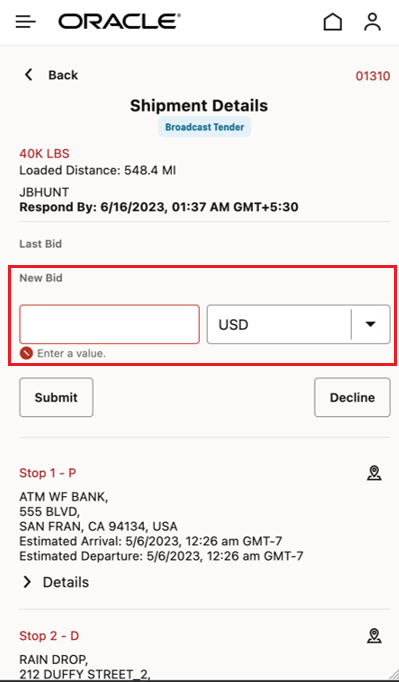 We welcome your comments and suggestions to improve the content. Please send us your feedback at otm-doc_us@oracle.com.
