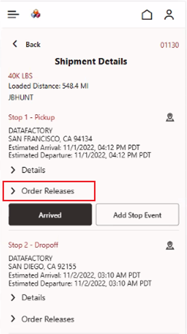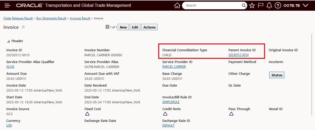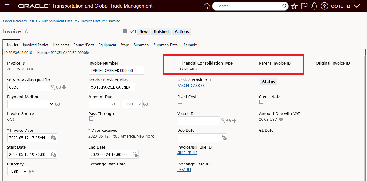 Multiple Parent Shipment Records With Order Release Details Grouped By Parent