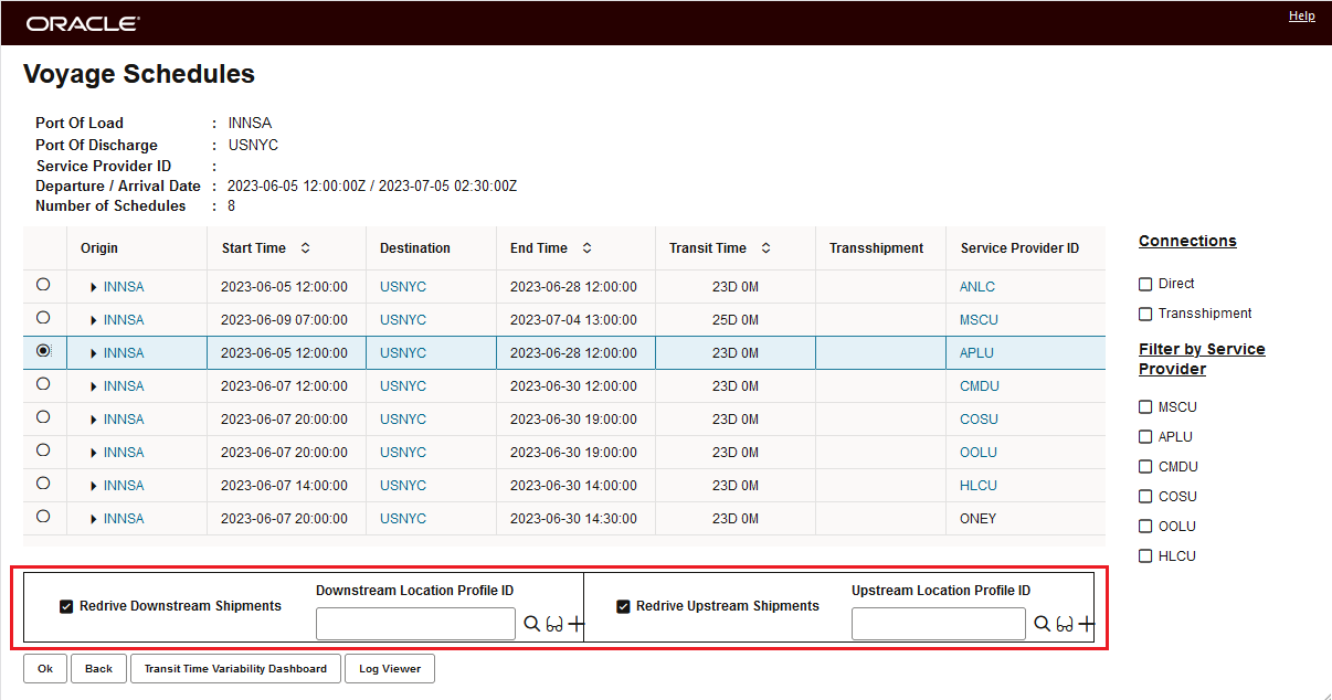 This feature provides the option for you to define the Service Provider(s) for your Detachable Trip Ground Schedules as a Service Provider Profile. When a Detachable Trip Ground Schedule is defined with a Service Provider Profile versus a single Service Provider, the assignment of the Service Provider will be handled as part of the Release Ground Schedule instance process - when the Detachable Trip Ground Schedule is Released, at that point, the lowest cost Service Provider in the assigned Service Provider Profile will be assigned. Once assigned - for your Detachable Ground Schedules only - the actions Change Service Provider and Choose Least Cost will only consider Service Providers in the Service Provider Profile assigned to the Detachable Trip Grounds Schedule that the shipment was released from.