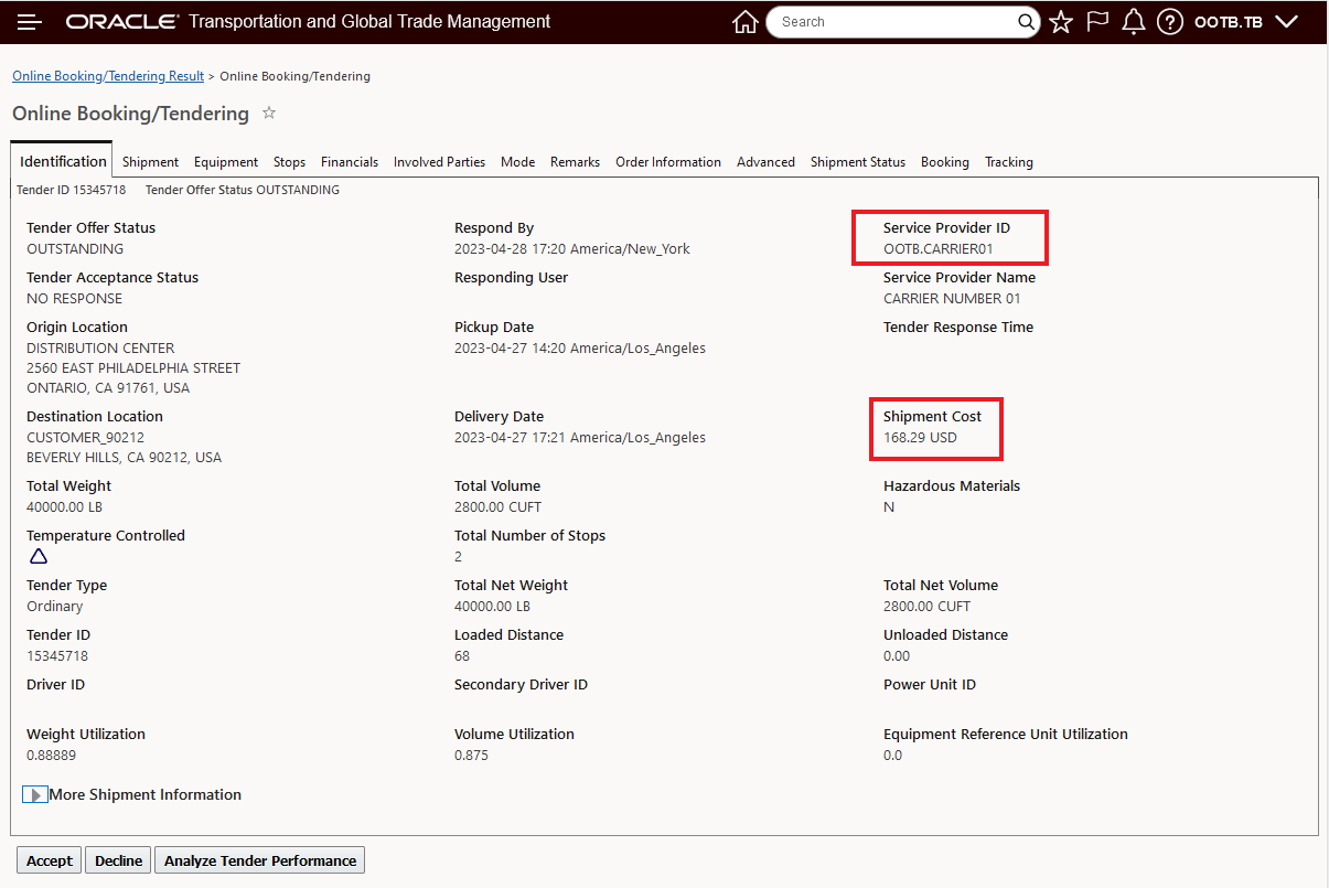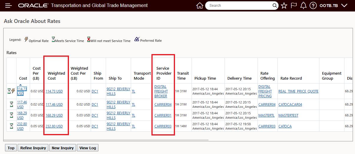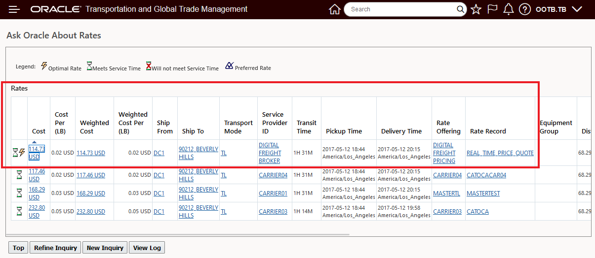 - If the necessary LOOKUP entries are not available, the shipment cannot use this rate