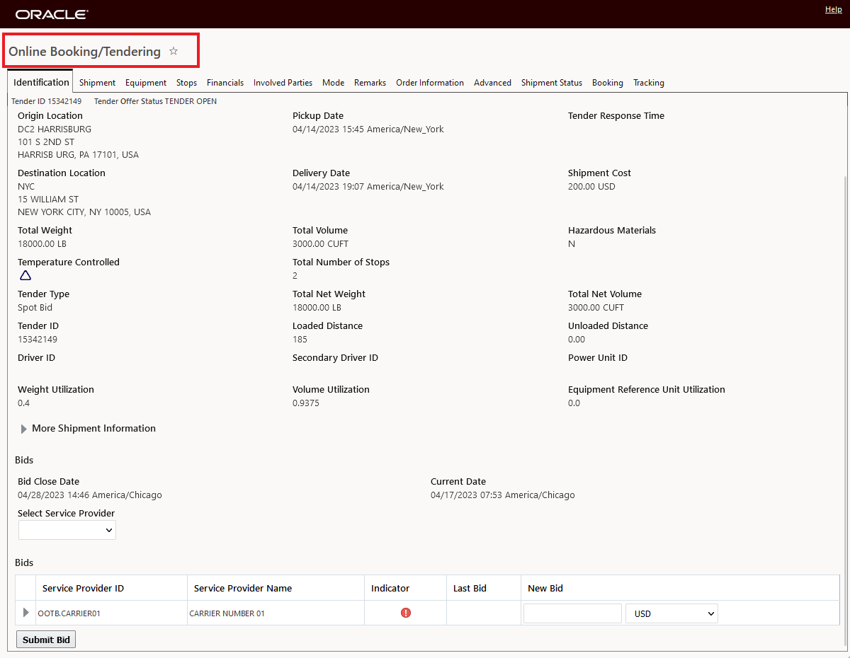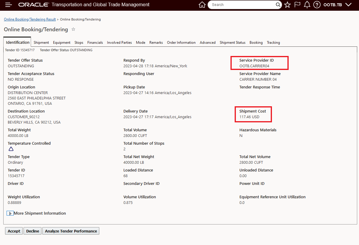 For Detachable trips, the system does not allow you to specify both Service Provider and Service Provider Profile ID.