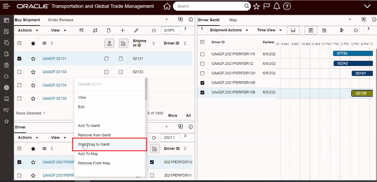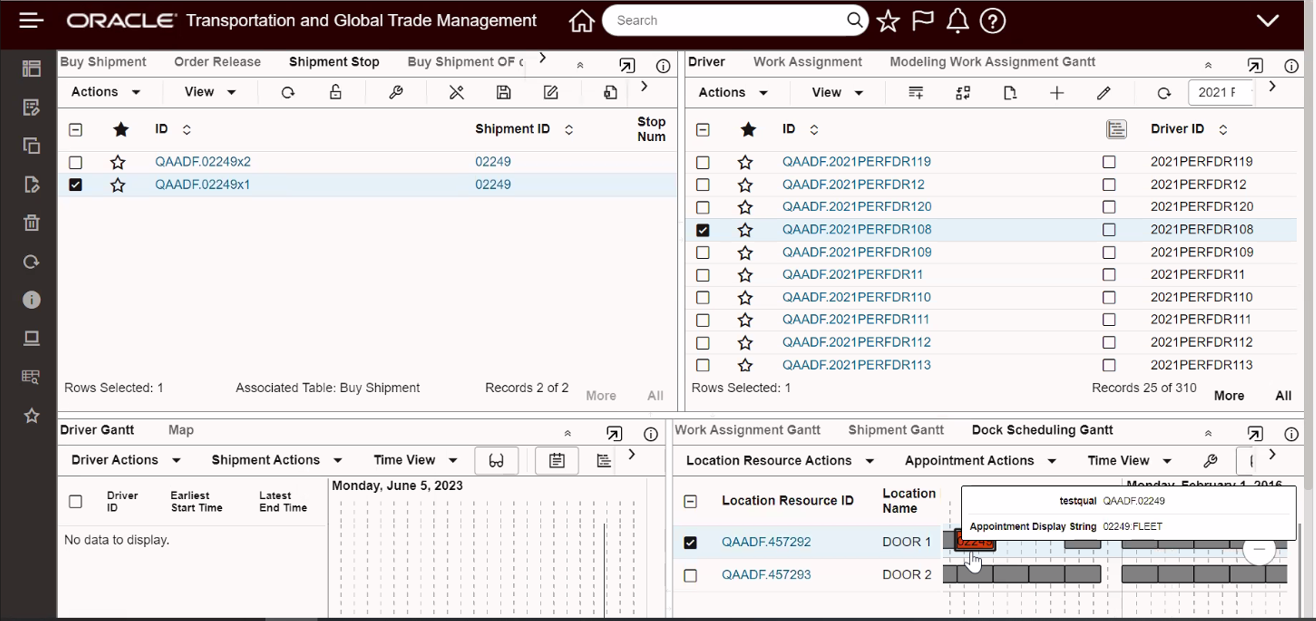 - Gantt - Drag and Drop - Shipment Stop Table to Appointment Gantt and Shipment Table to Driver Gantt
