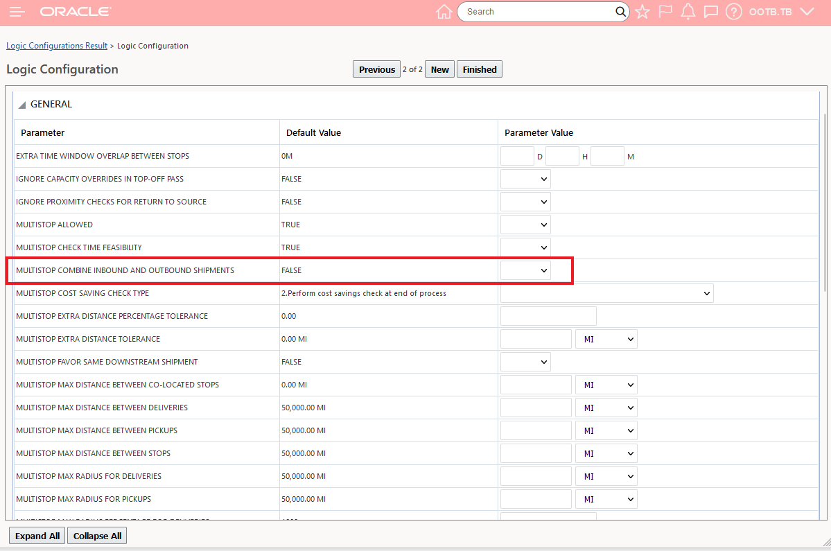 Logic Configuration - Multi-stop Parameter - MULTISTOP COMBINE INBOUND AND OUTBOUND SHIPMENTS