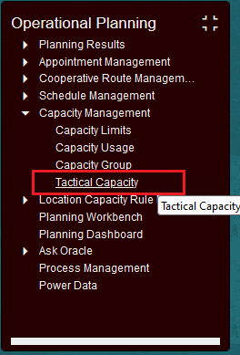 Tactical Capacity can be accessed via Operational Planning > Capacity Management > Tactical Capacity.