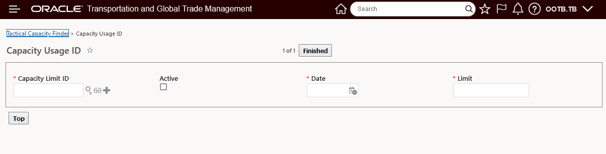 The Tactical Capacity entry screen requires a minimal amount of data entry - you will need to provide a Capacity Limit ID for the date to be considered, the Active flag will need to be checked, the Date for the capacity being defined needs to be provided and the Limit.