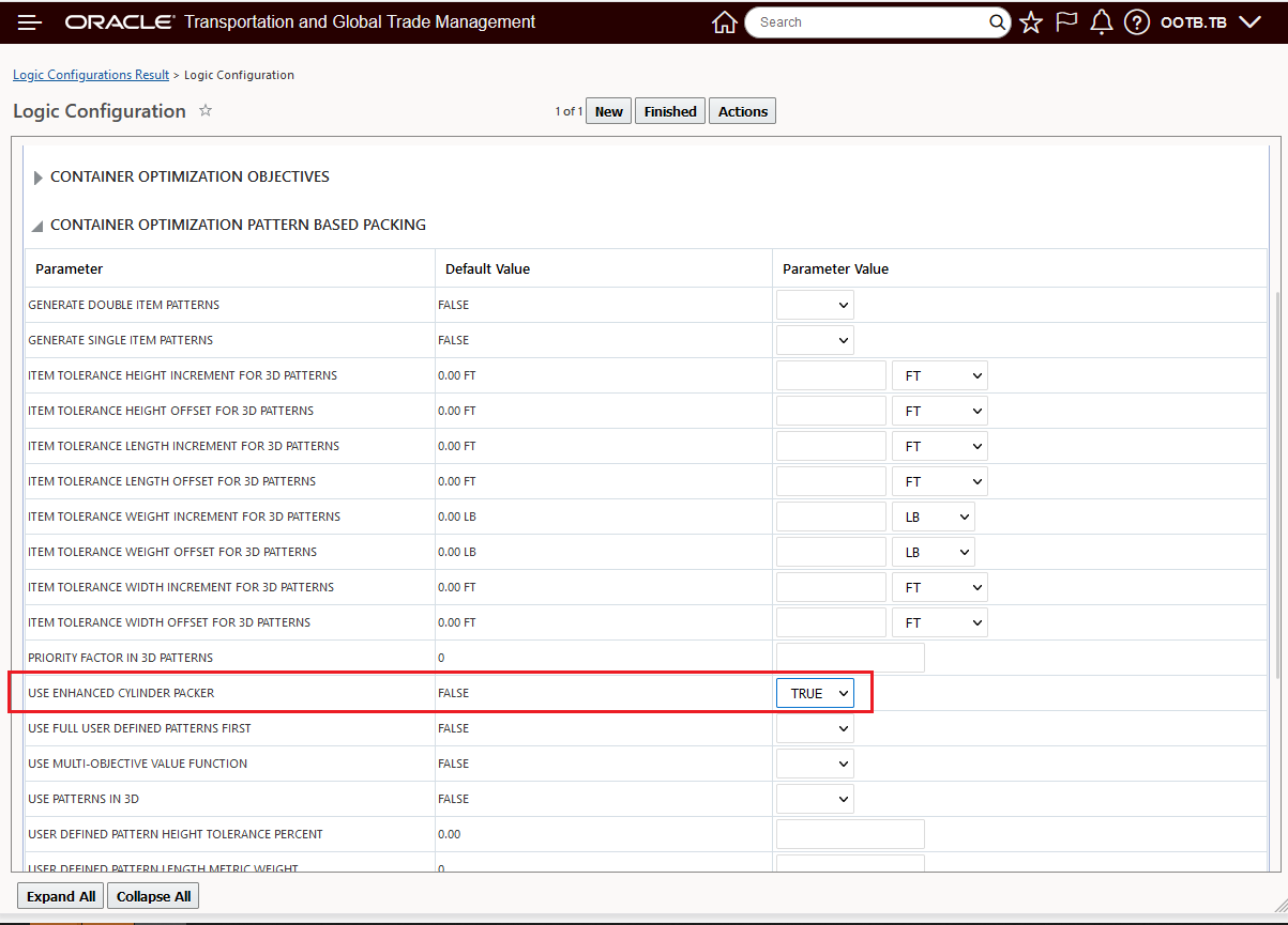 The Container Optimization Logic Configuration parameter USE ENHANCED CYLINDER PACKER must be set to TRUE - default is FALSE.