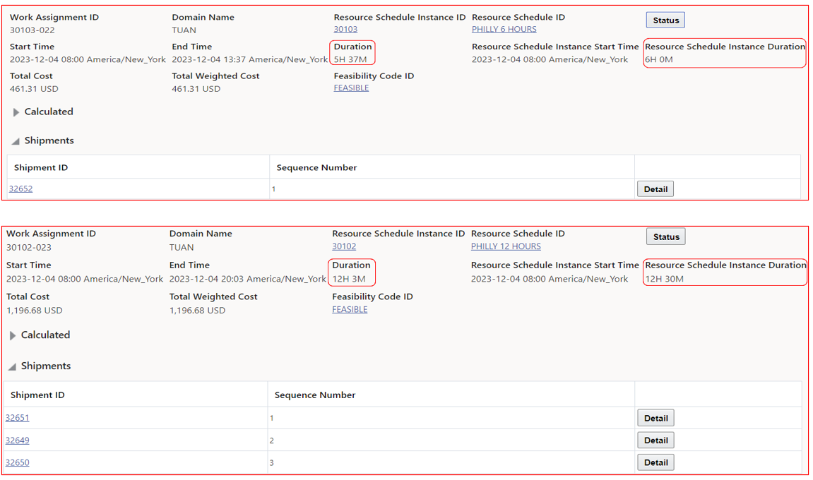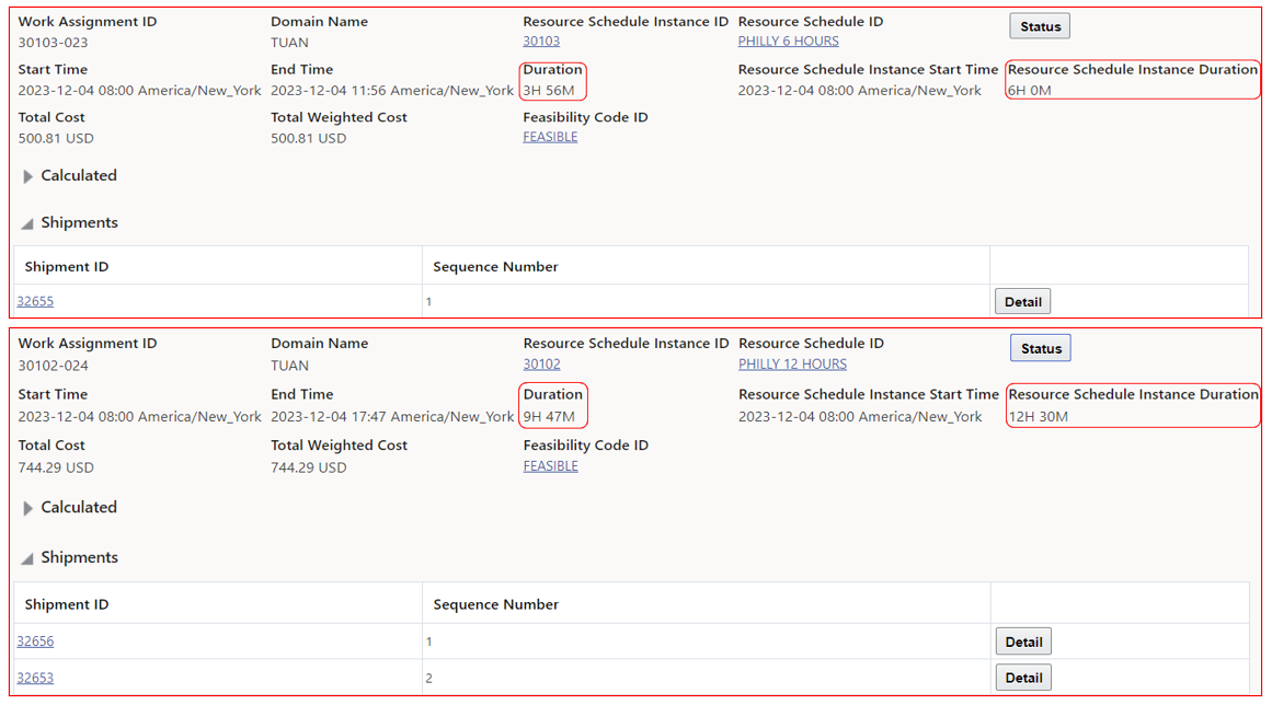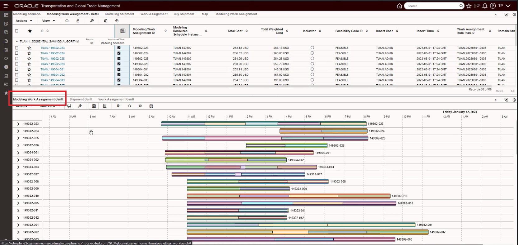 This feature provides an improved visualization of the timing and sequencing of the shipments planned by LNM as part of a Work Assignment Simulation.
