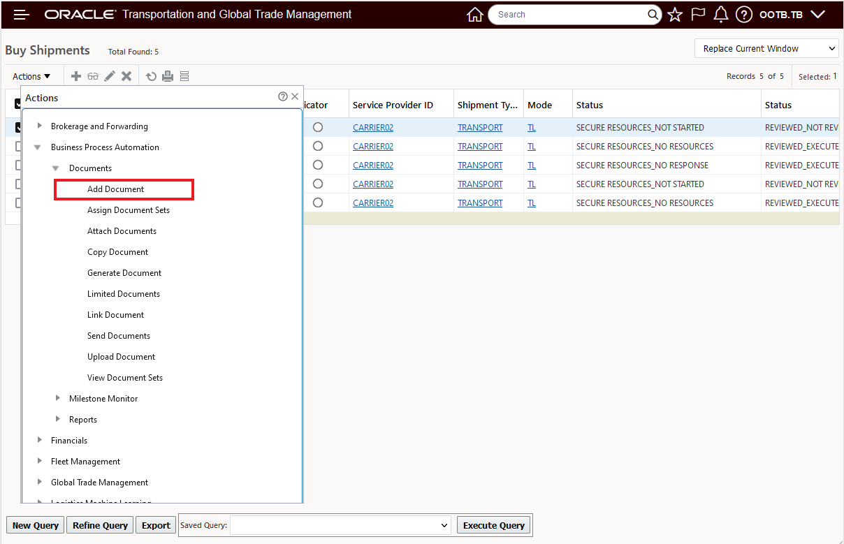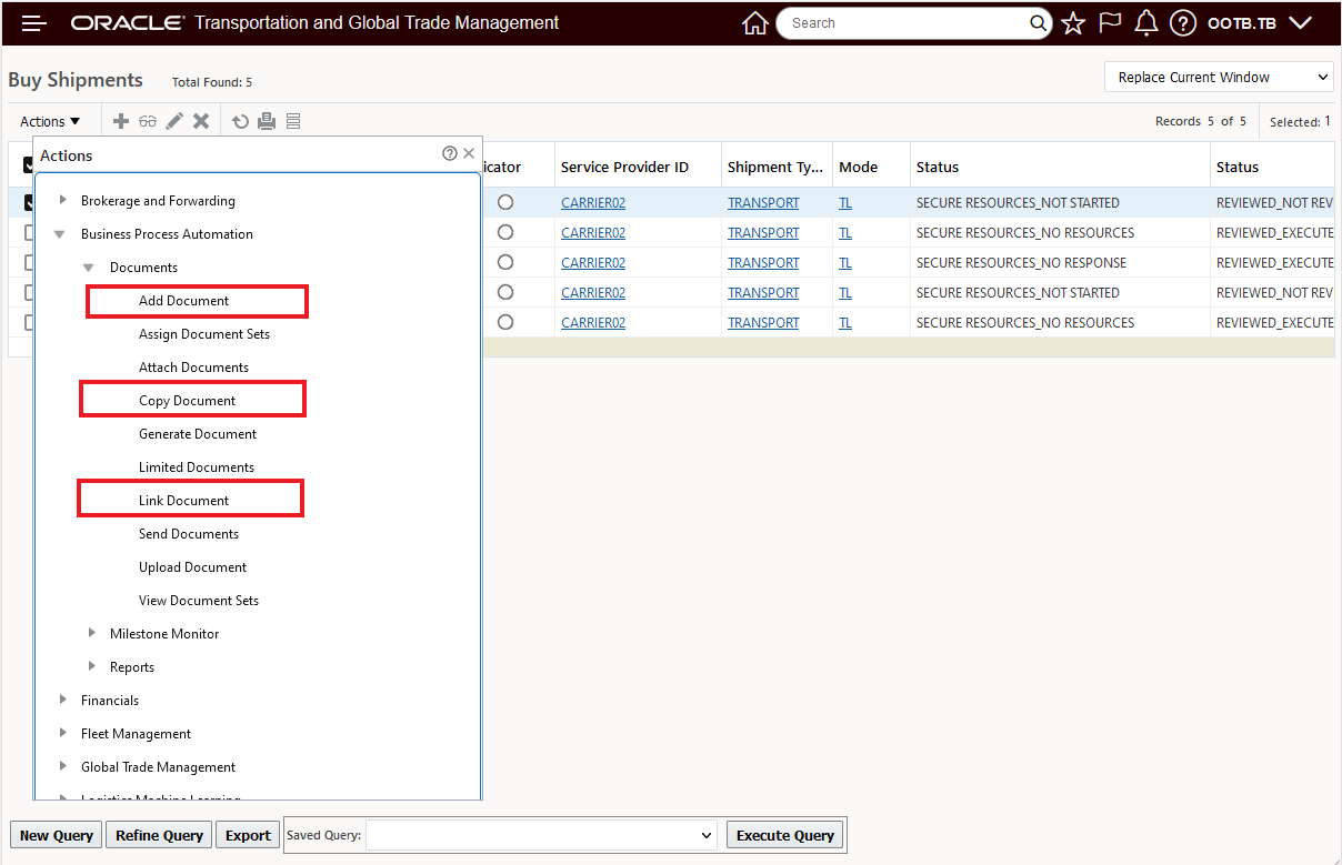 - Doc ID 2195580.1: Oracle Cloud Applications - Transportation and Global Trade Management Cloud: Get Started with Your Implementation. Begin with this document to start your implementation.