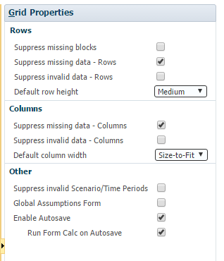 Form grid display can be tied to the start and end period for the respective scenarios on display. When the new grid level form property is checked, the time periods outside of the scenario time period range are suppressed.