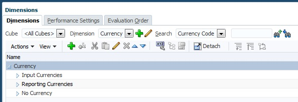 For new applications, administrators can optionally choose a simplified multicurrency option during application creation. Using simplified currency avoids the use of the Hsp_Rates dimension and adds a Currency dimension with exchange rates stored in the Account dimension.