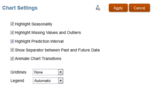 - Chart settings—A new Chart Settings dialog box lets you change the appearance of the chart in the prediction area.