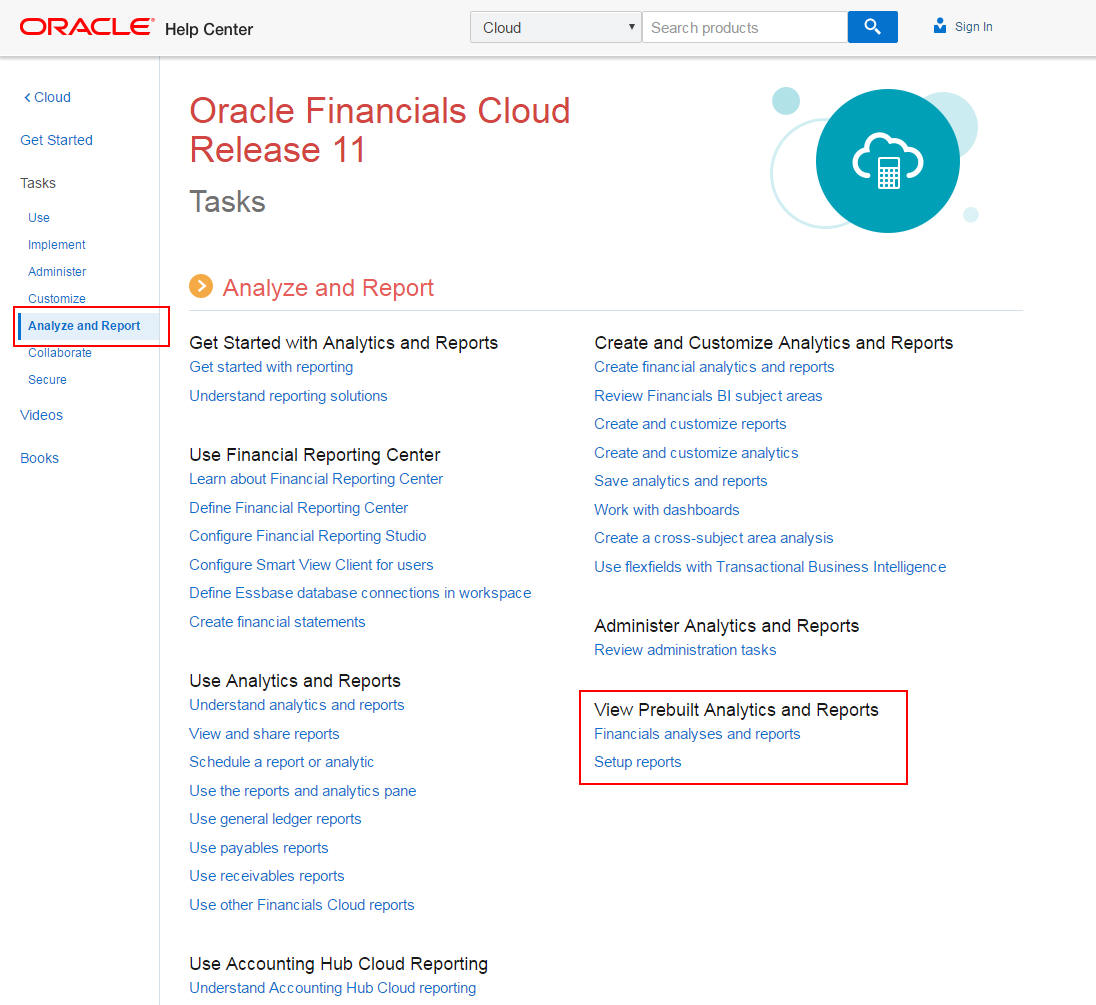 - From the Oracle Help Center home page at http://docs.oracle.com, navigate to Cloud > Applications.