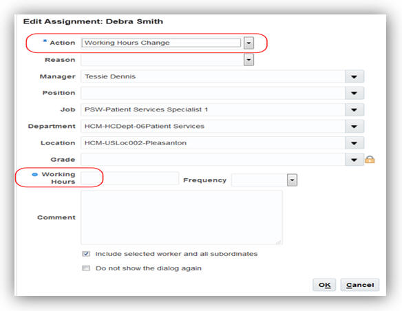 Use the Edit Assignment window to enter working hour details for workers in the hierarchy.