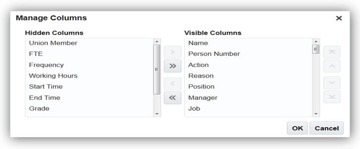 Manage Columns Window in Workforce Modeling