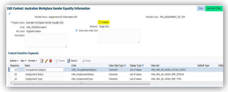 Oracle Fusion Global Human Resources for New Zealand: Enabled Values for Disability Category |