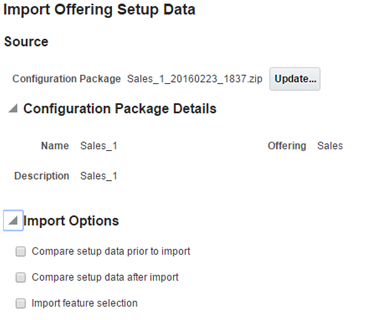 - Migration of feature selection is available only from the Offering and Functional Area based export and import process. Migration of feature selection is not available when setup data is exported and imported using implementation projects.