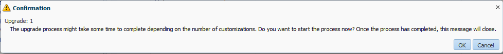 This process may take a couple of minutes. When the upgrade is done, the dialog box will close and the Upgrade Completed column will be checked.