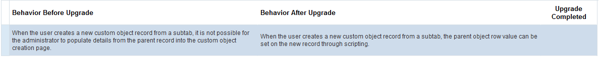 During your upgrade, most existing customizations made in Application Composer are automatically updated to the latest enhanced behavior in the new release. However, there are a few exceptions, which require you to manually initiate the upgrade script for each of those customizations.