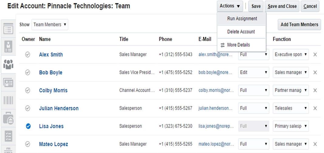 - To add team members to accounts and opportunities, see “Using Sales Cloud Mobile Applications > How can I add team members to an Opportunity or Customer's sales team?” in Oracle Sales Cloud Using Sales in the Oracle Help Center.