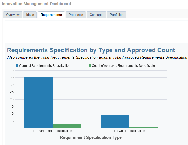 A new Innovation Management dashboard in Release 11 provides you with the count and cycle time of ideas, requirements, proposals, concepts, and portfolios.