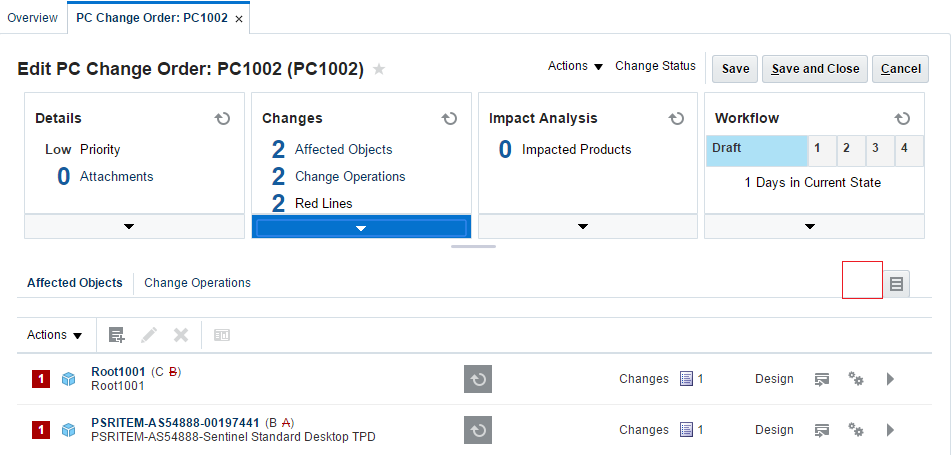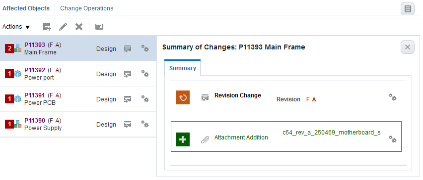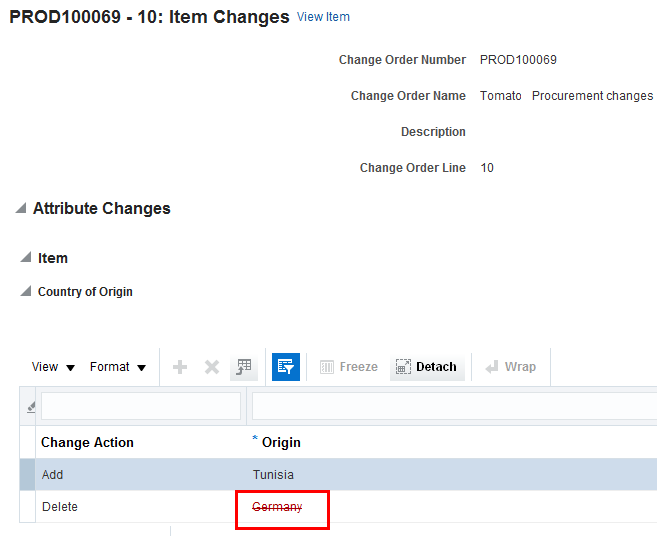 Prior to this enhancement, for multi-row EFF attributes, the change orders indicated attribute value changes by displaying textual indicators, using words like ‘Delete’. With this enhancement, in addition to the textual indicators, the old values of the EFF attribute are displayed with a red overstrike. This helps reviewers to easily spot the changes made to the multi-row EFF attributes.