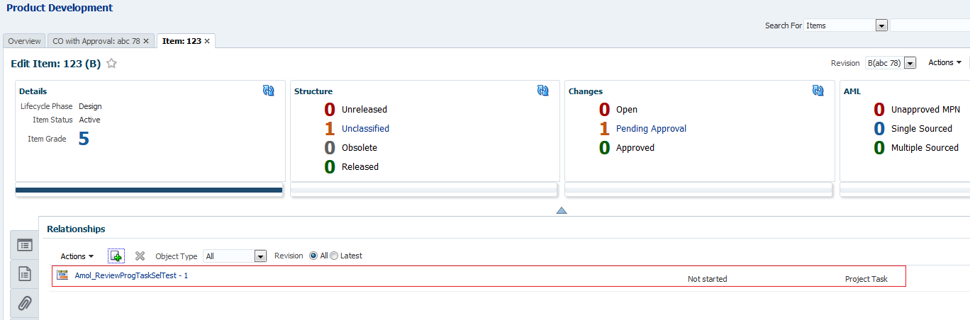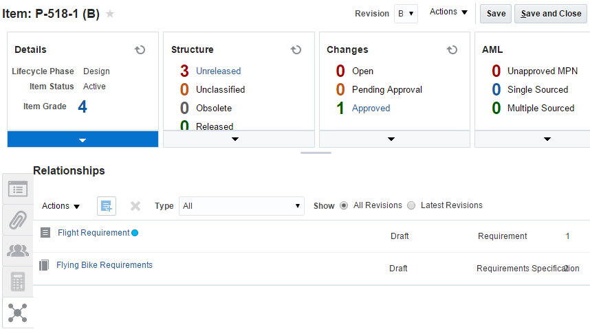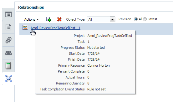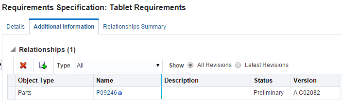 When a new revision or a new version is created, the relationships from the previous revision or version are carried forward. You can choose to see all the revisions or just the latest revisions of related objects.