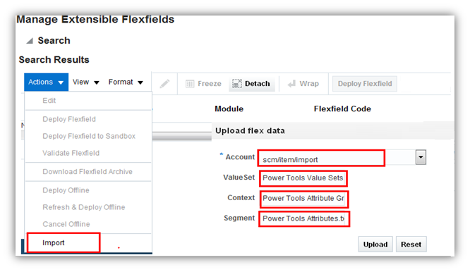 - Ensure that the CSV data files comply with the specifications detailed in Oracle Fusion Product Information Management: User-Defined Attribute Groups and Attributes (Extensible Flexfields-EFFs) Setup white paper (My Oracle Support Doc ID 1992317.1 )