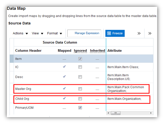 - Map target Pack Common Organization attribute to master organization (or equivalent) column from the source data file.