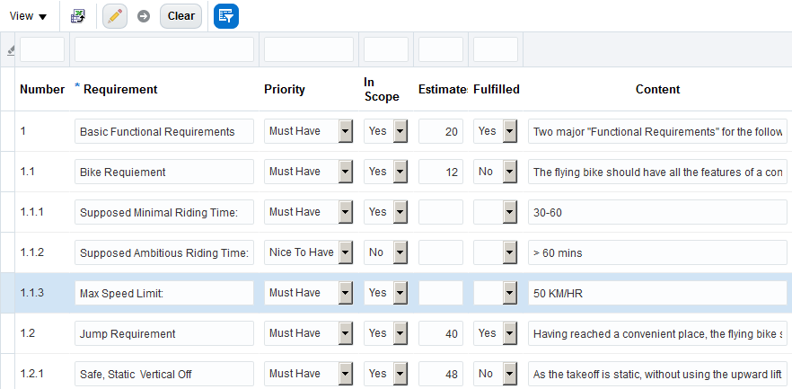 You can now edit attributes directly within the requirement specification table. You can also edit the description in this view and export it.