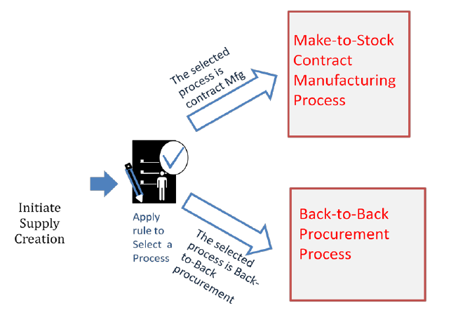Automated selection and execution of processes in Supply Chain Orchestration enables optimal selection of the best process for supply creation, for better utilization of in-house and partner resources.