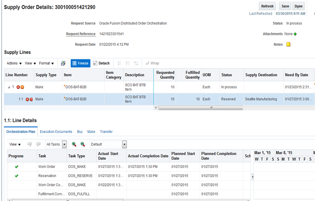 Supply Chain Orchestration also provides users complete visibility into the progress of the supply that is being created and the relationship between various documents of a flow.