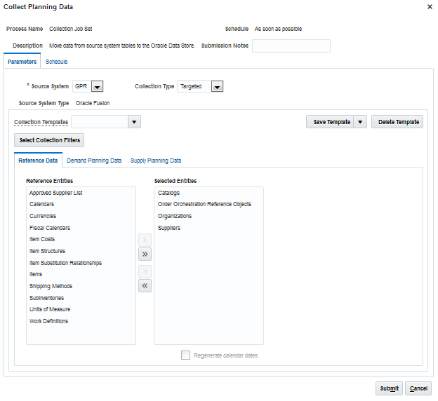 Oracle Fusion Global Order Promising and Oracle Fusion Planning Central include visibility into internal material transfers for planned items, from creation to receipt of the transfer. A planner can examine, and then reschedule or cancel an internal material transfer, if necessary, before shipping occurs. A planner can release these changes to Supply Chain Orchestration, and then the internal material transfer is updated in Inventory Management.